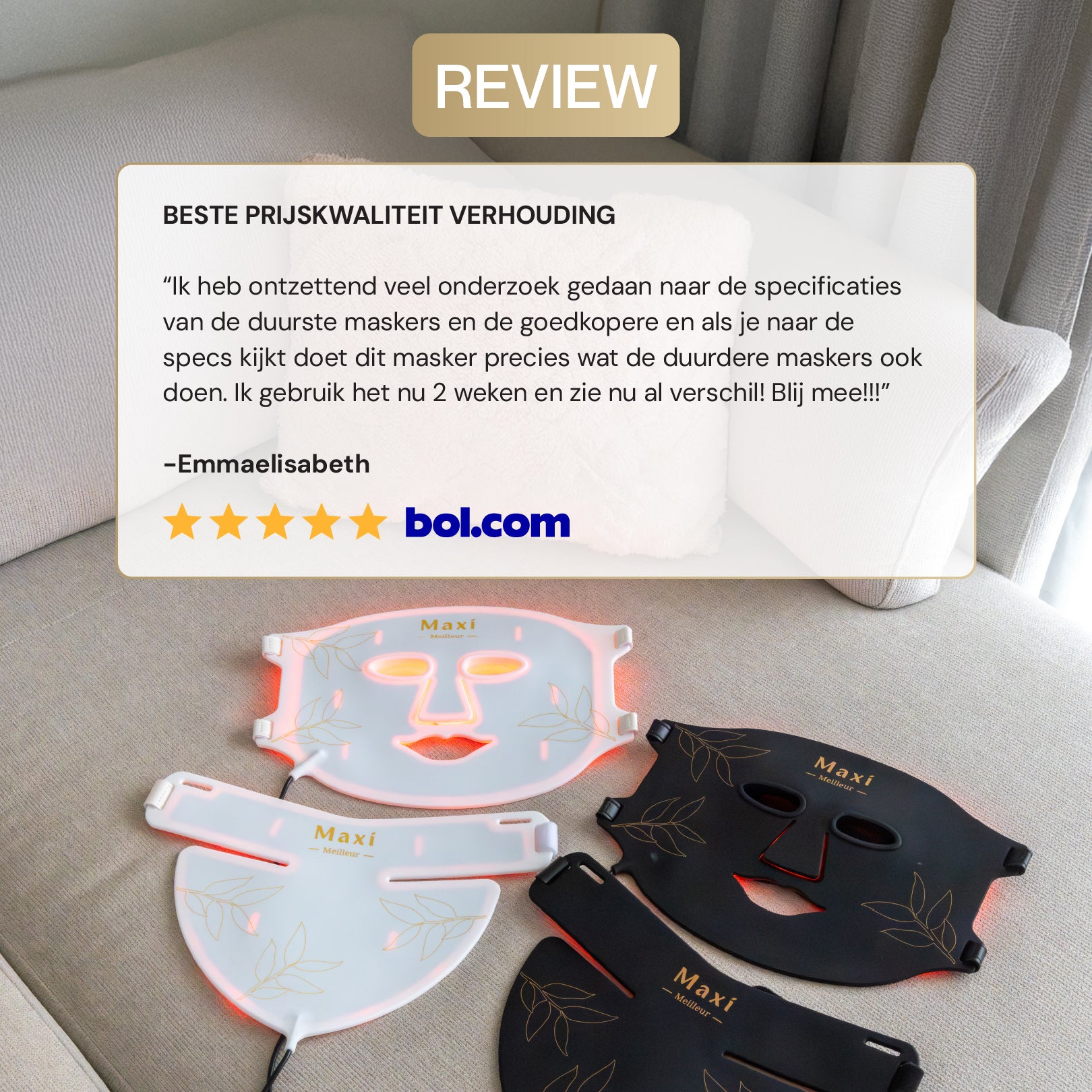 Ik heb recent het gelaat- en halsmasker besteld. Bij de levering was er iets misgegaan, maar na contact met de klantendienst (zeer vriendelijk!) hebben ze meteen een nieuw masker opgestuurd. Super service! 🙌 Ik ben benieuwd naar de resultaten, maar heb al heel veel goede dingen gehoord over de LED-maskers.